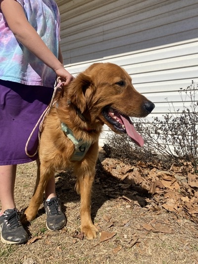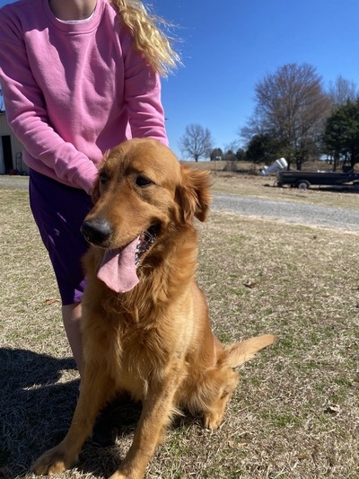 Bowie sired several of our recent litters. He is actually Rocky's dad, so he is the grandpa of our puppies that we will be having now. He has all the characteristics that you would expect to find with a golden retriever. He's laid back and gentle and loves everyone he meets! He's got a beautiful dark red coat so we are expecting some pretty dark puppies from his litters.